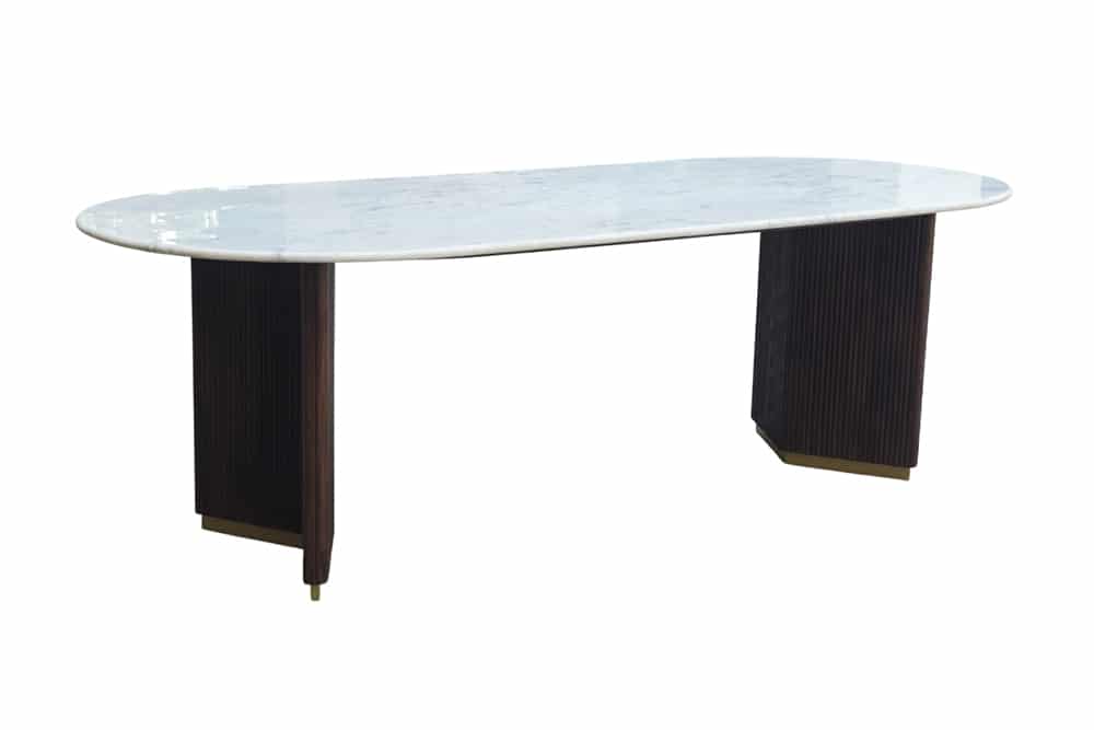 Tento jedálenský stôl s mramorovou doskou je nielen vizuálne príťažlivý, ale aj pevný a stabilný. S rozmermi 240 × 100 cm ponúka dostatok priestoru na pohodlné stolovanie, rodinné oslavy a spoločenské stretnutia. Prirodzená kresba mangového dreva a jedinečná textúra mramoru zaručujú, že každý kus je originálny. Je to ideálny dizajnérsky jedálenský stôl pre tých, ktorí hľadajú výnimočný nábytok s charakterom. Perfektný stôl do modernej jedálne. Jedálenský stôl GATSBY sa perfektne hodí k moderným jedálenským stoličkám, zlatým doplnkom alebo tmavým kontrastným prvkom. Vytvorte si elegantnú jedáleň, ktorá kombinuje luxus, funkčnosť a nadčasový štýl.