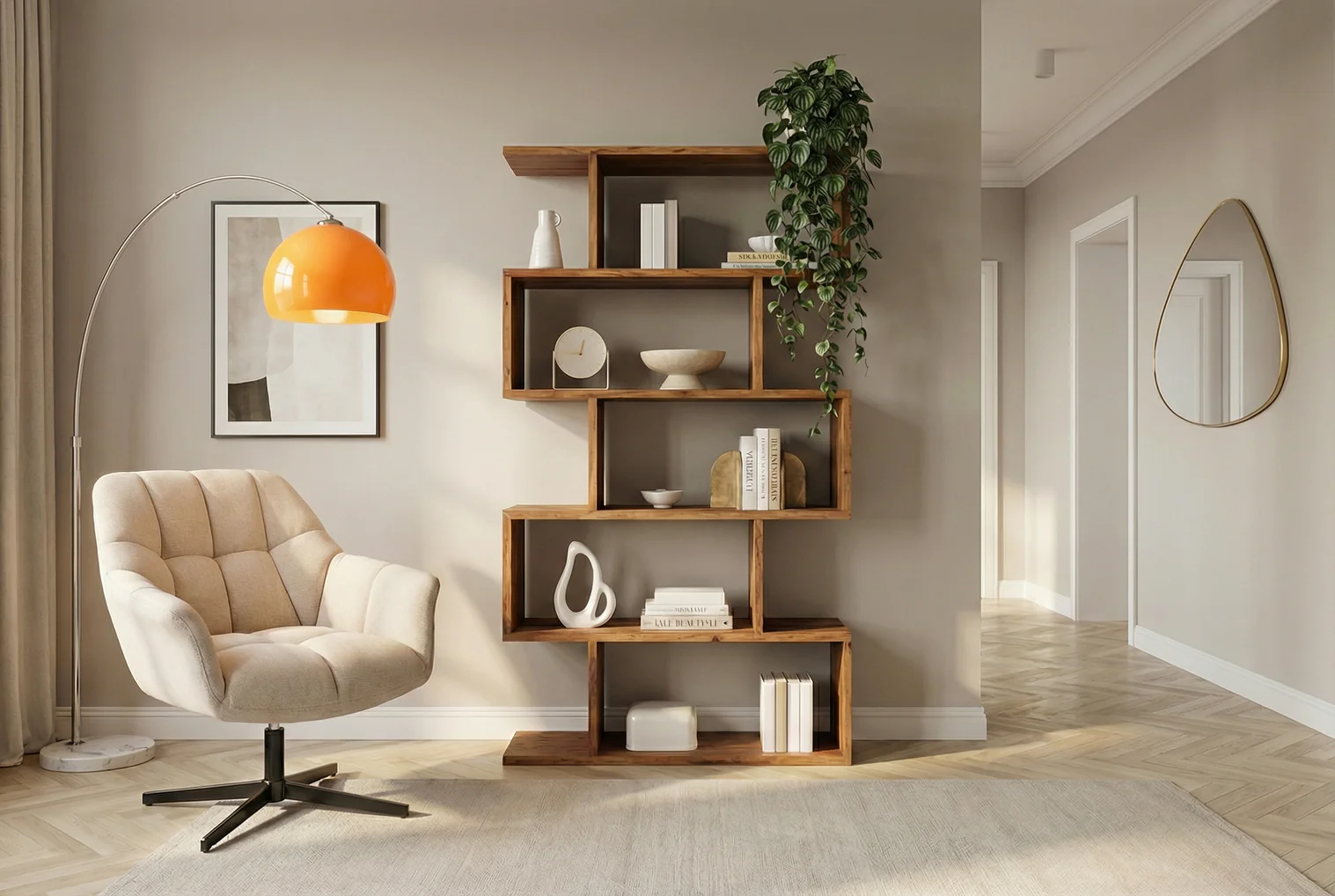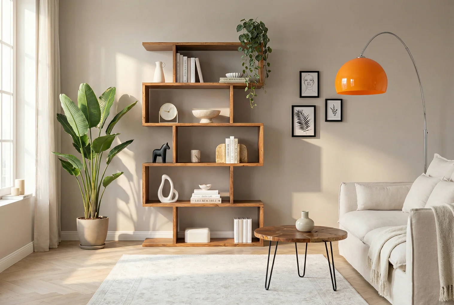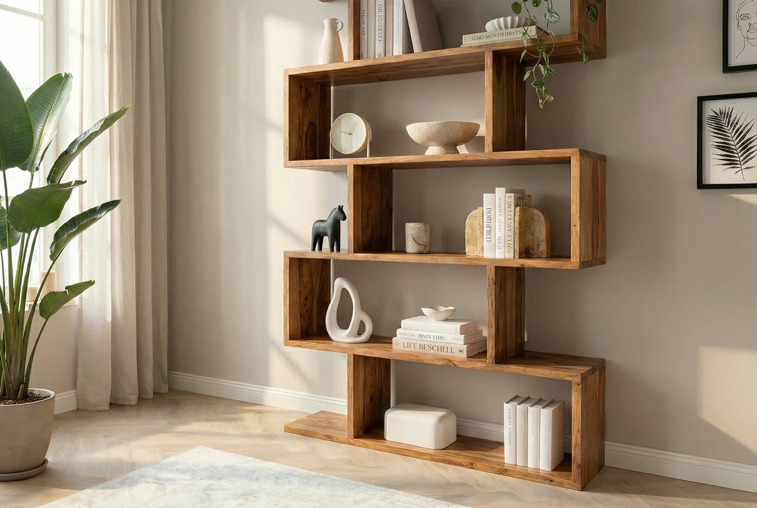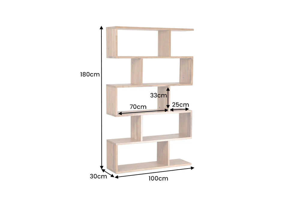 Policový regál zo série Columbia je vyrobený z masívneho akáciového dreva. Tento policový diel je skutočným vrcholom vášho obytného priestoru, pretože ponúka otvorený úložný systém v priestore. Jeho jedinečný, stupňovitý dizajn evokuje zakrivenú sochu a umelecky prezentuje knihy, dekoratívne predmety a rastliny, čokoľvek tam umiestnite. Teplá, prirodzená textúra akáciového dreva robí z každého kusu výrazný, jedinečný predmet – živý, elegantný a plný charakteru. S piatimi otvorenými policami ponúka polica dostatok úložného priestoru – ideálne na knihy, rámy na obrazy, vázy alebo vaše obľúbené dekoratívne predmety. Vďaka svojej robustnej konštrukcii z kvalitného masívneho dreva zaujme nielen vizuálne, ale aj svojou odolnosťou a stabilitou. Či už v obývačke, pracovni alebo na chodbe, táto dizajnérska polica prináša do vášho priestoru štruktúru, teplo a štýl.