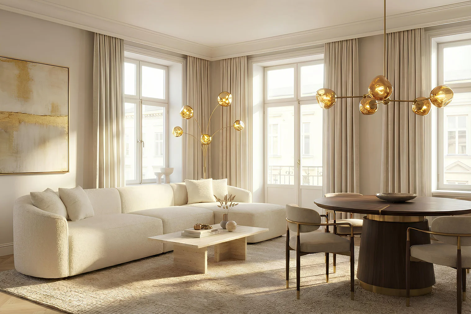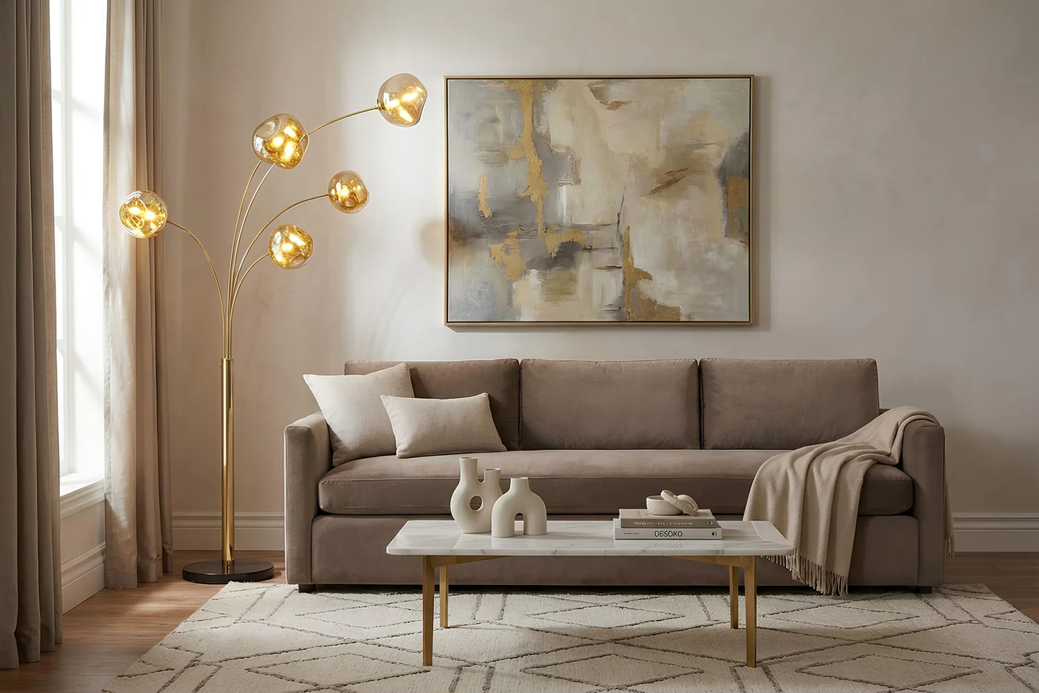Zakrivený dizajn s viacerými ramenami príjemne rozptyľuje svetlo po celej miestnosti, vďaka čomu je lampa ideálna na akcentové a príjemné osvetlenie. Či už je umiestnená vedľa pohovky, ako zvýraznenie v chodbe alebo ako štýlový doplnok vášho interiéru, táto dizajnérska stojacia lampa kombinuje funkčnosť a estetiku a vytvára skutočný pútač pozornosti. Kus nábytku, ktorý každý večer vnesie do vášho domova trochu viac atmosféry. Skombinujte si ju s ostatnými lampami z tejto série.