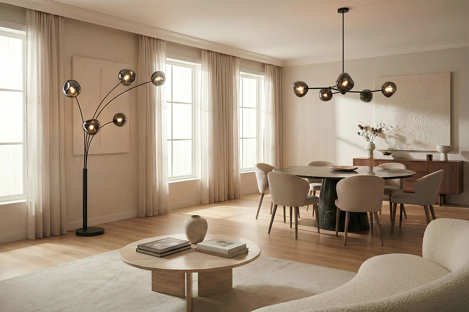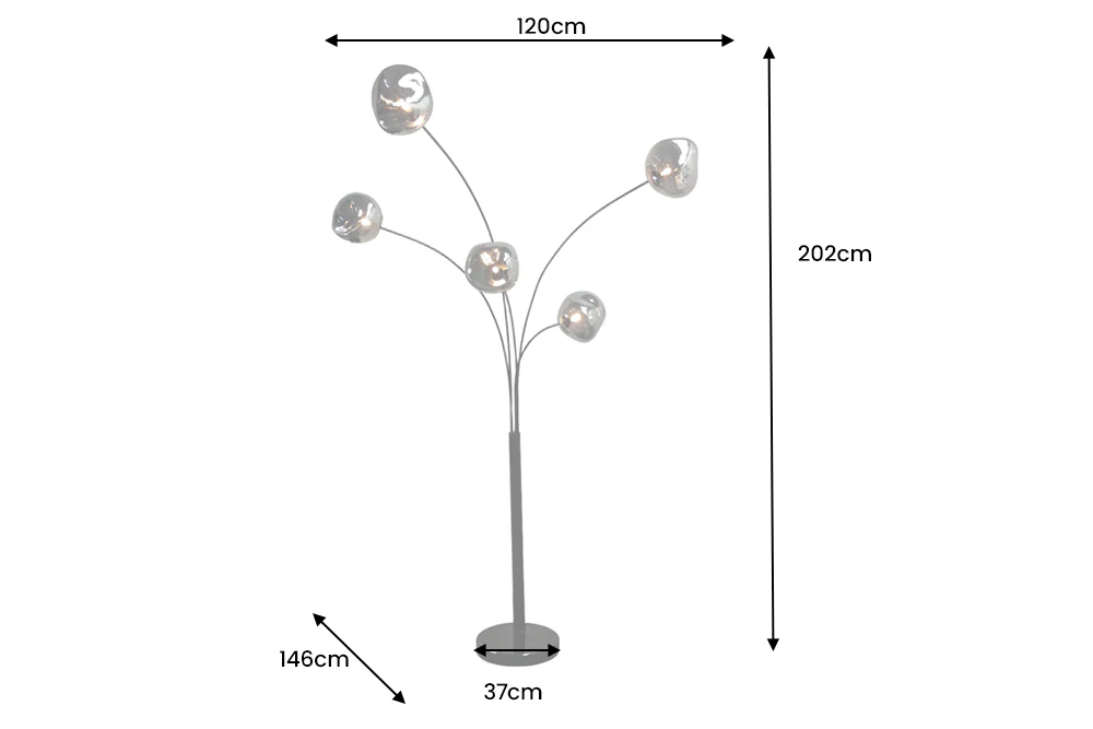 Zakrivený dizajn s viacerými ramenami príjemne rozptyľuje svetlo po celej miestnosti, vďaka čomu je lampa ideálna na akcentové a príjemné osvetlenie. Či už je umiestnená vedľa pohovky, ako zvýraznenie v chodbe alebo ako štýlový doplnok vášho interiéru, táto dizajnérska stojacia lampa kombinuje funkčnosť a estetiku a vytvára skutočný pútač pozornosti. Kus nábytku, ktorý každý večer vnesie do vášho domova trochu viac atmosféry. Skombinujte si ju s ostatnými lampami z tejto série.