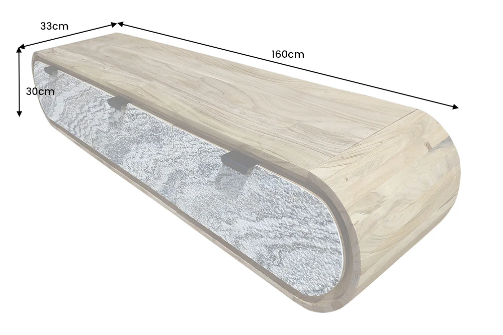 Hľadáte štýlový a kvalitný TV stolík do obývačky, ktorý spojí moderný dizajn, prírodné materiály a praktické využitie? TV stolík Hangy je výnimočný kus nábytku, ktorý zaujme svojím organickým tvarom, kvalitným spracovaním a nadčasovou eleganciou. TV stolík je vyrobený z masívneho akáciového dreva, ktoré je známe svojou pevnosťou, dlhou životnosťou a krásnou prirodzenou kresbou. Predná časť stolíka je doplnená o kamennú dyhu, ktorá vytvára originálny kontrast medzi prírodným drevom a moderným povrchom. TV stolík Hangy– dizajnový TV stolík z masívneho dreva s prírodným vzhľadom.